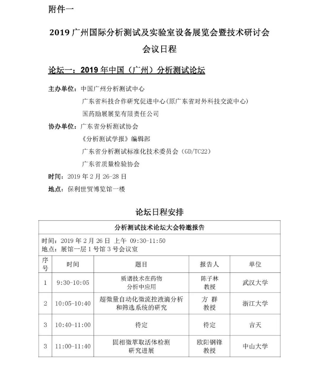 附件1:2019中国(广州)分析测试论坛日程安排