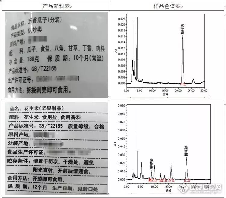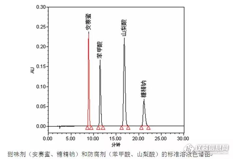 为了验证配料表中信息的真实性和可靠性,对实验室中的一批坚果类样品进行测定,测定的项目为防腐剂(苯甲酸、山梨酸)和人工合成甜味剂(安赛蜜、糖精钠)。