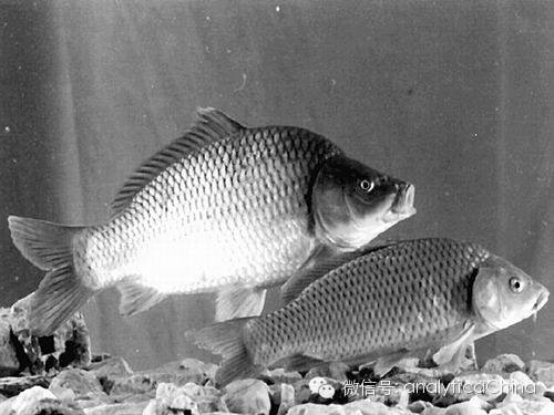 “转全鱼生长激素基因”黄河鲤(左)及其对照鱼图